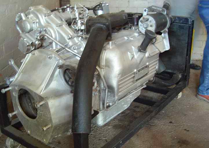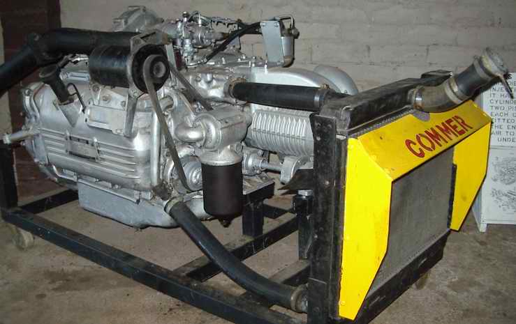 A two-stroke diesel with direct injection, there are 3 horizontal cylinders, each containing 2