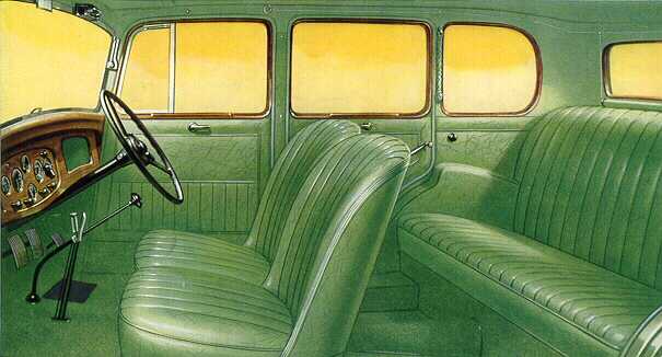 a car of tasteful and pleasing finish: the upholstery is of high quality material, and headlining and carpet are in harmonious tone.