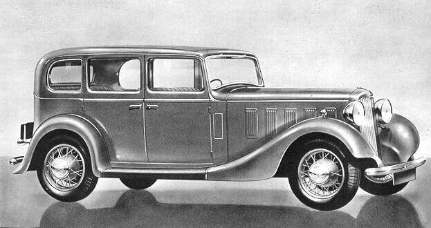 Safety all-steel, six-light saloon body, seating five persons in comfort.
