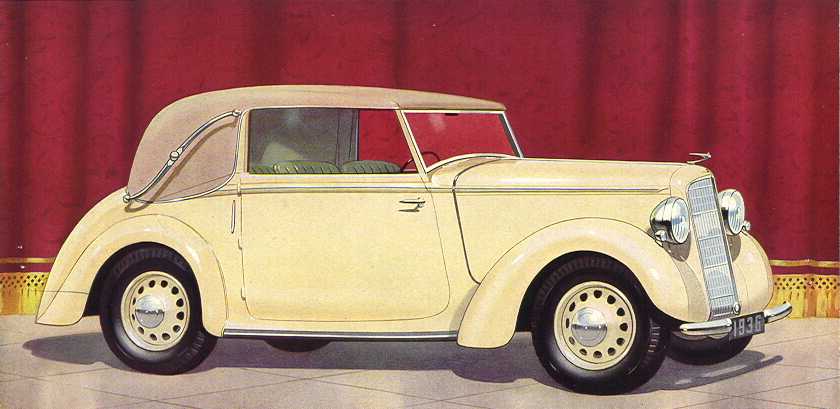 Three-quarter steel panelled body with handsome modern lines. The three purpose hood rolls back to give Coup-de-Ville position, folds down with