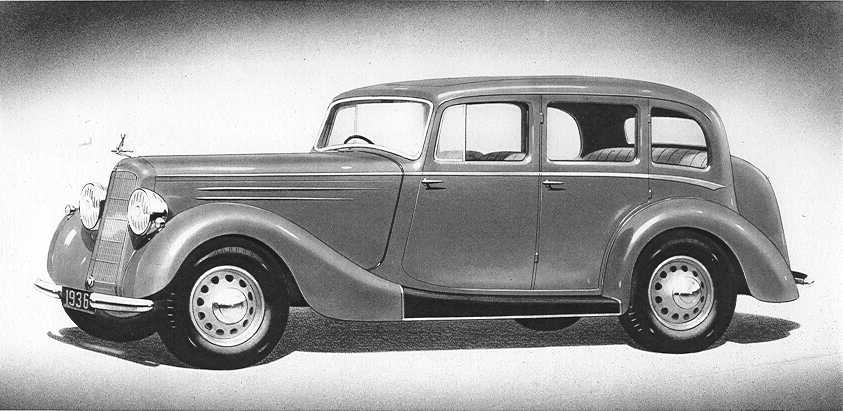 Safety all-steel, six-light saloon body. Attractive mascot on painted radiator. Bumpers front and rear.