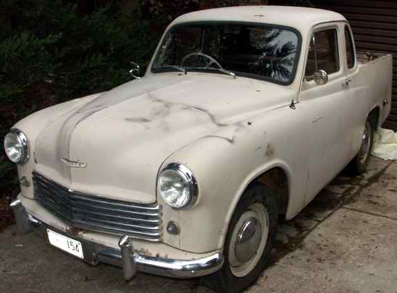 While not badged as a Hillman, its whole front end is visually identical to the Hillman Minx Mark IV, and is a forerunner of the Commer and Hillman Mark VIII utes which seem to have been available in Australia under both brand names.