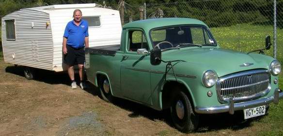 HCC of South Australia member Ken Kite is really flying on his trip from Adelaide to the red centre of Australia in his 1956 Mk VIII Hillman utility and caravan.