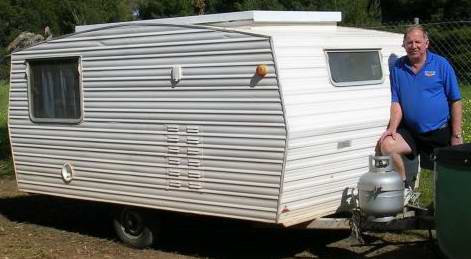 The little caravan is about 8 feet long, 6 feet wide, about 4.5 feet high with a small roof section able to be raised to give some headroom. The caravan has Morris Mini Minor wheels. Ken spent all Tuesday in Port Augusta, and headed north again on Wednesday, when he covered 480 km, another 510 km yesterday and hopes to do the remaining 350 km to Ayers Rock today (Friday).