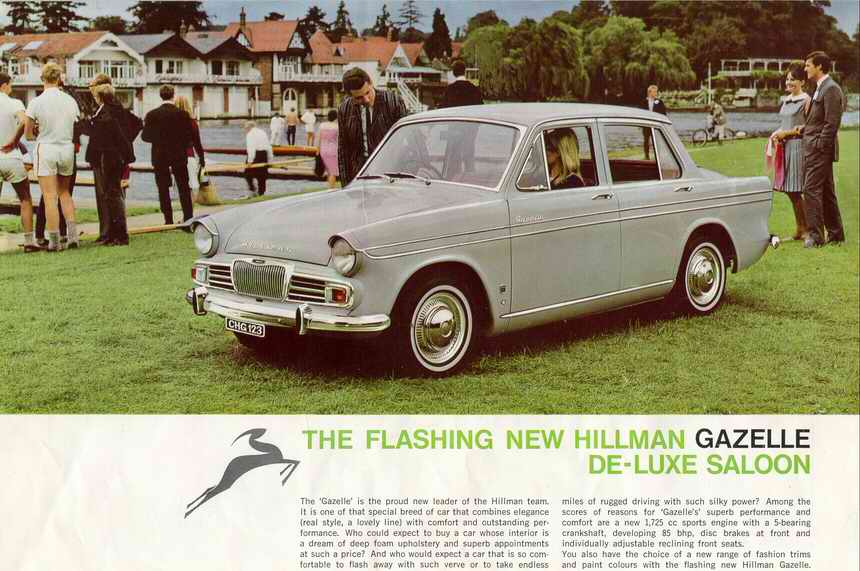 The above picture is identical to the Singer Gazelle picture found at http://www.rootes1725cc.info/gazelle/gaz1.htm except for the following details touched up by an artist :