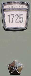 purchase by Chrysler) featured the Chrysler "pentastar" trademark badge below the "ROOTES 1725"