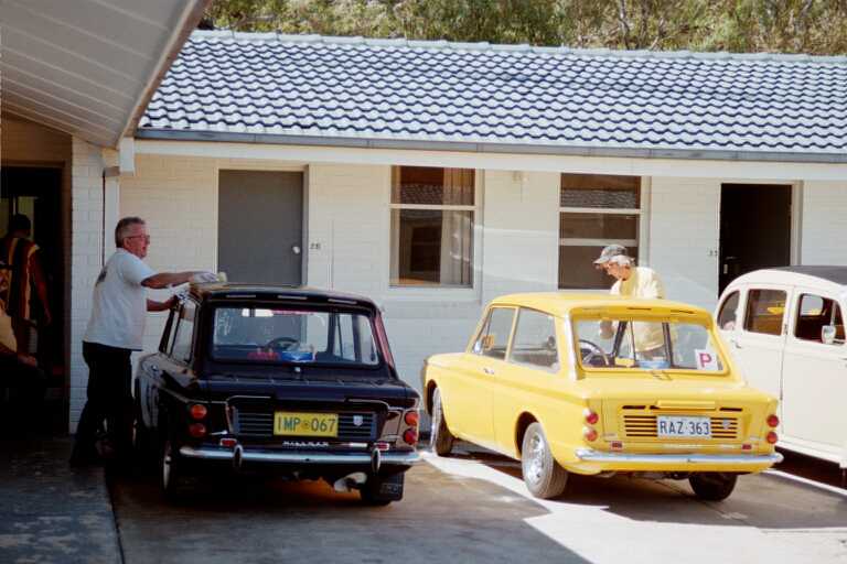 Two S.A. Hillman GTs (“Imps”) getting a wash and polish for the weekend. David Coatsworth (left), any "YJ" Walker. |