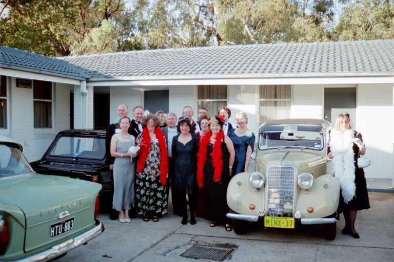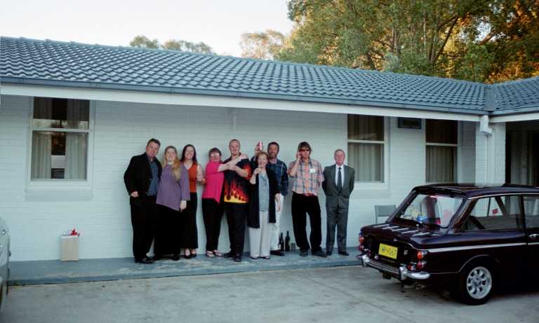 Dinner was a three-course affair, interdispersed with conversations about the weekend and its events. During the course of Dinner we were all presented with our car and group photos, and china mugs, which had the Rootes Car Club logo printed on them. Once the plates were cleaned away after dinner, it was down to the serious end of the weekend with the presentation of trophies to the winners. Matthew Lambert and John Howell took the floor, and the microphone, and started proceedings by thanking everyone for coming to the weekend. Trophies were duly presented to winners, and Michele and I were again fortunate enough to win Best Imp. It was now time to forward the official “hooter” to the Hillman Car Club of South Australia, in readiness for the next rally in 2004. Our President, Robert Tavener, was called to the floor and with great aplomb, and the obligatory acceptance speech, duly took over control of the hooter. He thanked Matthew and John for what was another great Hillman Rally, and welcomed all present to come and join The Hillman Car Club of South Australia in the Barossa Valley for the 2004 “Rally in the Valley”. Some sneaky work had been carried out behind the scenes by the 2004 Rally committee, and Michele and I, along with “YJ” and John Walker, sped back to our motel room to put on some “T” shirts that we had printed up, advertising the “Rally in the Valley”. When we arrived back in the dining room with our mobile advertising, they were an instant success. Carol Seaton suggested that we should get peoples' signatures on our T-shirts, and so I went to reception, borrowed a black felt pen, gave it to Carol, who duly signed on the dotted line. This started the ball rolling, and it wasn’t long before myself, Michele and John’s T-shirts were covered in signatures. Funnily “YJ” seemed to be getting only the signature and phone numbers of all the young waitresses in the Dining Room. Ahhh to be young again!! People were now swapping seats, enjoying more drinks, and generally having a great time. Soon it would all be over for another two years. The dining room eventually cleared with people being invited back to a few rooms of our motel for parting drinks. We ventured to Brenda and Ian Kitto’s room for a while and then on to Elaine and Greg’s room to end the night. Only trouble was, most people didn’t want to take home any wine they had brought with them, and so it was decided that we had better do the right thing and finish them off, as you have to. I think it was about midnight when we got back to our room, ready for a good nights sleep, ready for the long day ahead.