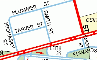 so you can follow the line of Smith Street northward from there.