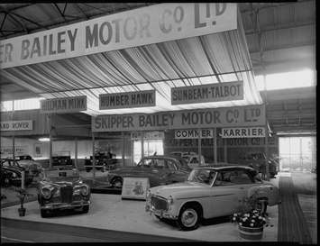 Title: Perth Royal Show display of Sunbeam Talbot, Humber Hawk and Hillman cars.