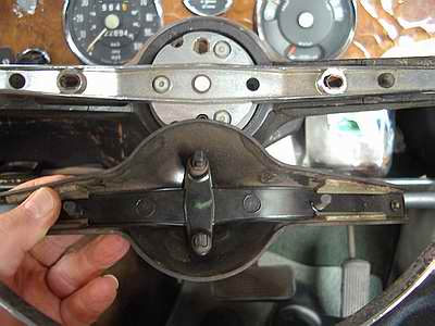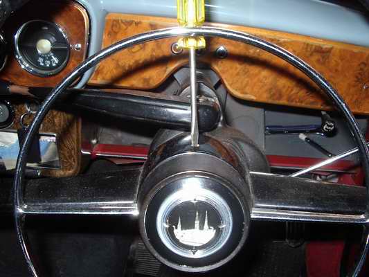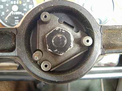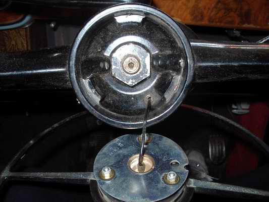 Use force in the right places to pull the Bakelite cap from the steering wheel.