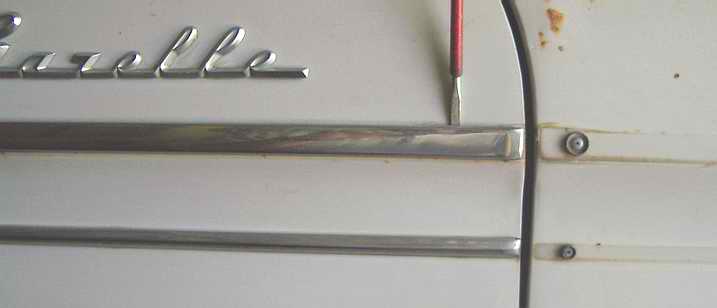 Some trim strips are held on with other type fasteners like rectangular shaped spring type clips. These work the same way as the buttons only they are not round. These should be removed in the same manner and the are riveted on the same as the button type clips.